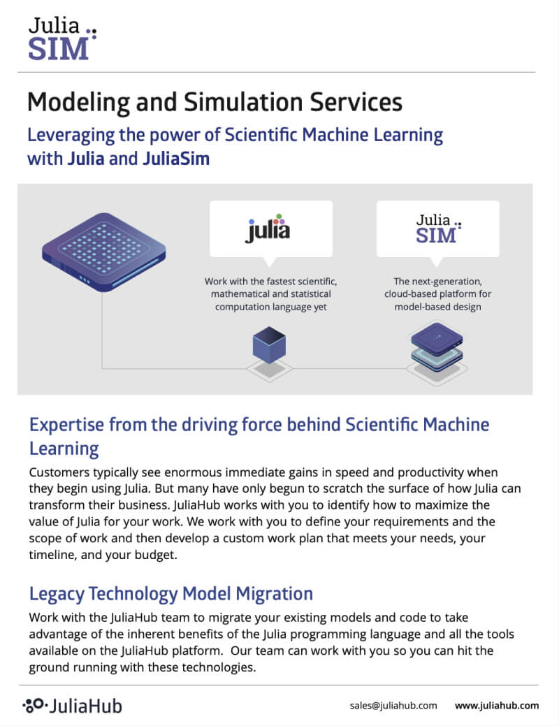 JuliaHub needs the contact information you provide to us to contact you about our products and services. You may unsubscribe from these communications at anytime. For information on how to unsubscribe, as well as our privacy practices and commitment to protecting your privacy, check out our Privacy Policy.