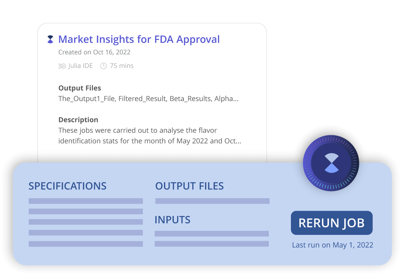 All batch jobs are automatically saved, can be added to an archive and returned to anytime for reproducibility. Time Capsule provides users the ability to retain job information that may not be in current use, but is saved from deleting for several years due to regulatory obligations.